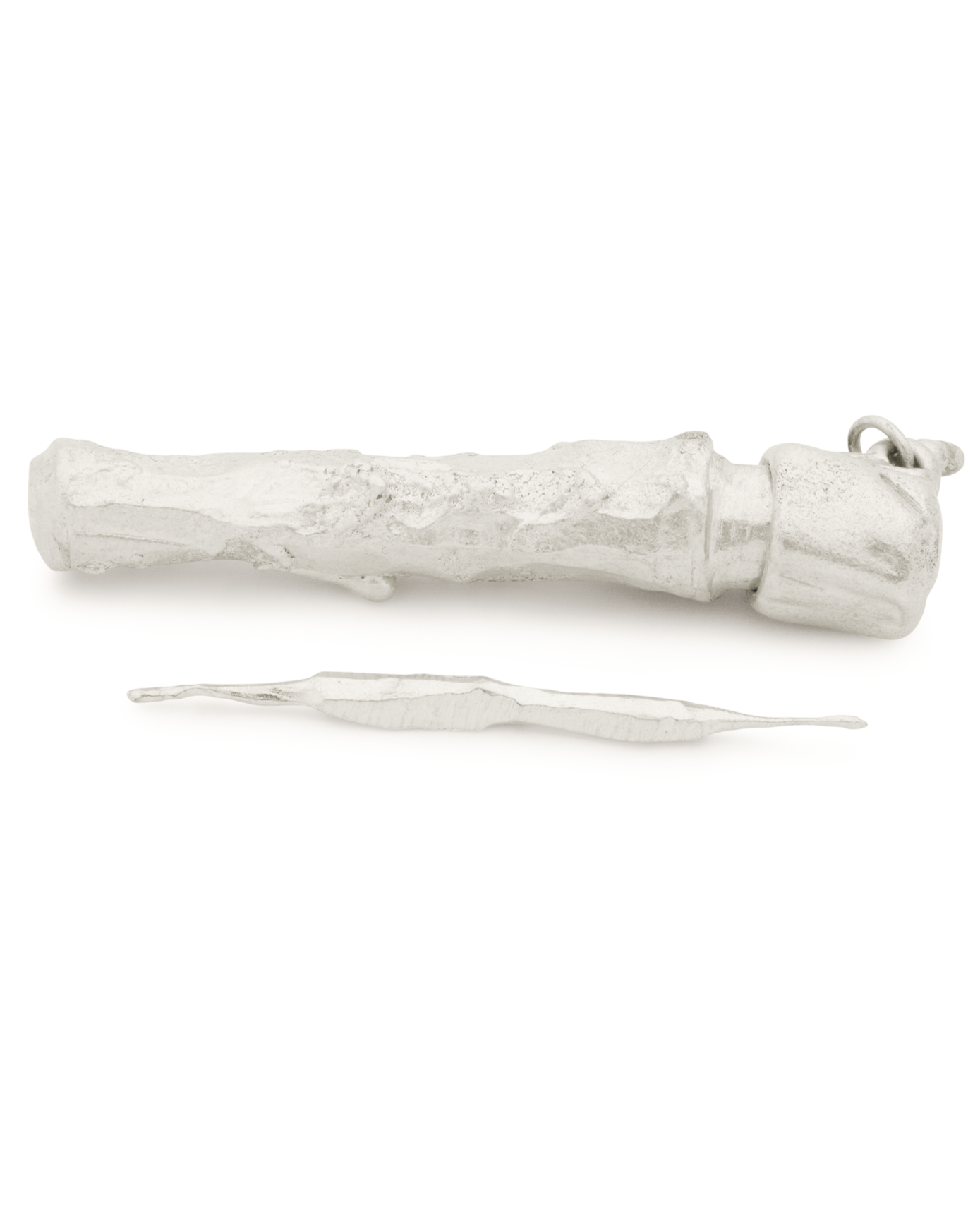 An irregularly shaped re usable toothpick accompanied with an organically textured case.